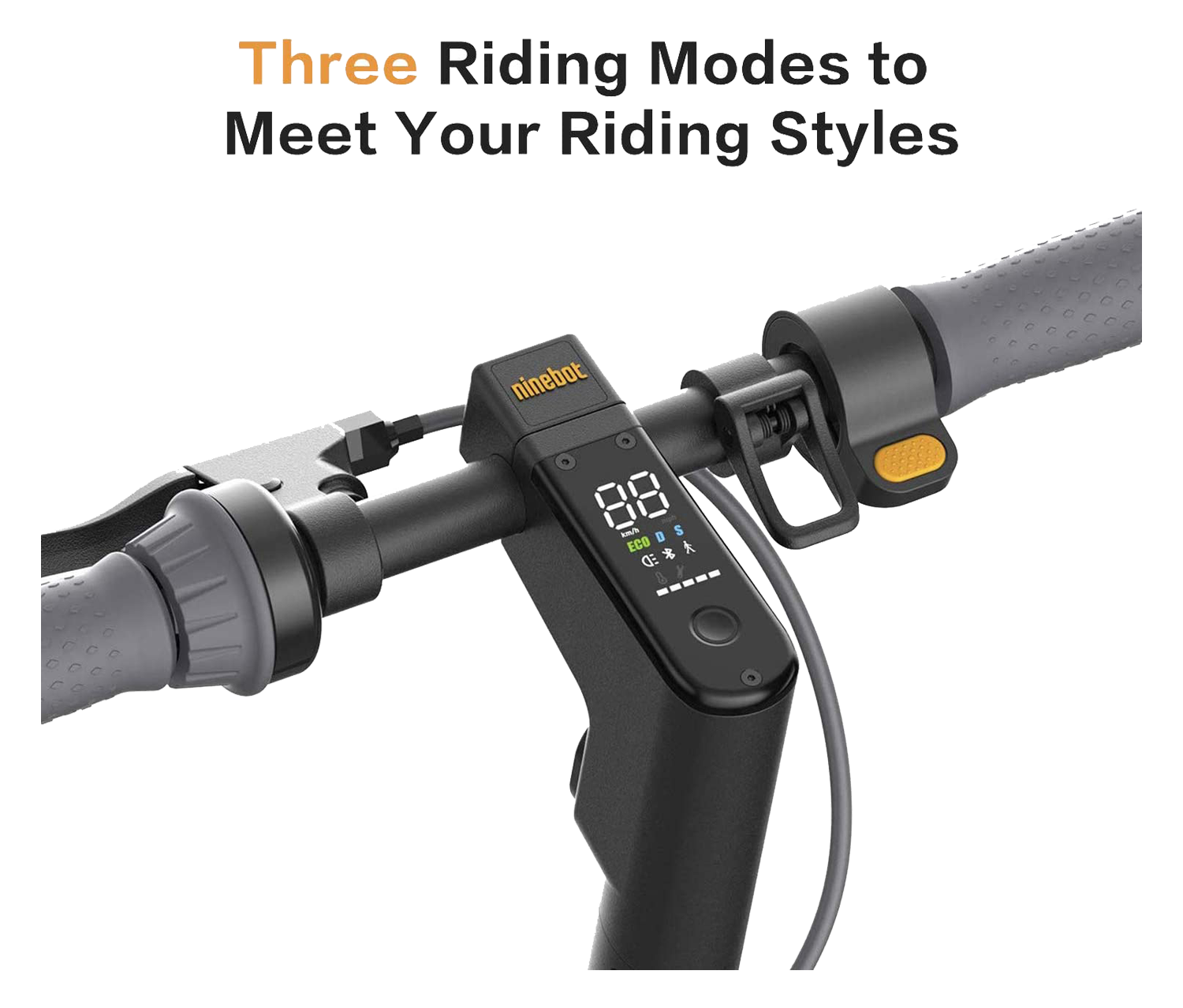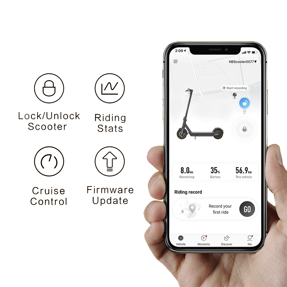 Cuenta con tres modos de conducción para adaptarse a sus estilos de conducción, se puede acceder a los modos Eco, Estándar y Deportivo mediante el panel de control LED intuitivo, incluida la función de asistencia eléctrica para empujar la patineta mientras no se conduce. Además, puede ver sus señales de mantenimiento, niveles de potencia, conectividad Bluetooth y más.