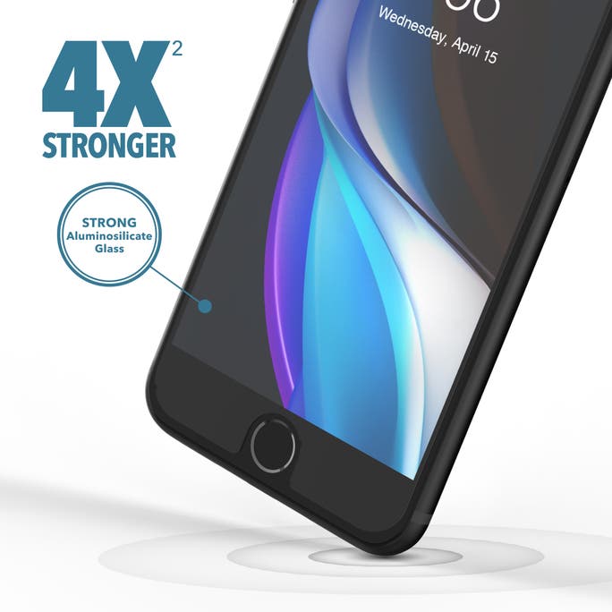 Los bordes reforzados de Glass+ ayudan a evitar el astillado y su forma biselada se integra a la pantalla a la perfección.