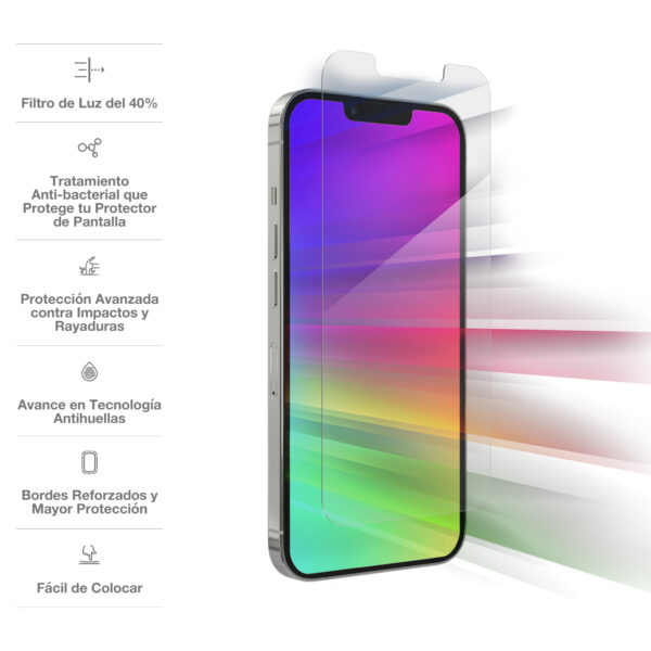 VisionGuard para Ojos Sanos: El cansancio visual provocado por la extensa exposición a las pantallas de los dispositivos puede causar un envejecimiento prematuro de los ojos, ojos secos e irritados, problemas para dormir y visión borrosa. La capa protectora Eyesafe en el GlassFusion VisionGuard+ filtra la luz azul de alta energía visible (HEV) perjudicial para los ojos que sale de la pantalla de tu celular.